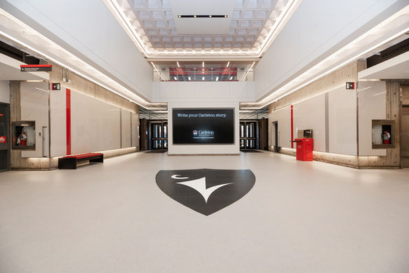A revitalization of the admissions building lobby area. The work includes extensive wall finishes which are made up of 4'x8' white porcelain tiles from Italy, painting of the existing waffle slab ceiling, removal of and new floor sealant, new aluminum doors, new glazed railings for the main stair case, and renovations to 1 washroom, new millwork, carpet tile, and architectural bulkheads. Mechanically the work consists of upgrades to the heating & cooling systems and new plumbing fixtures. The electrical work includes over 1000 feet of new lighting.